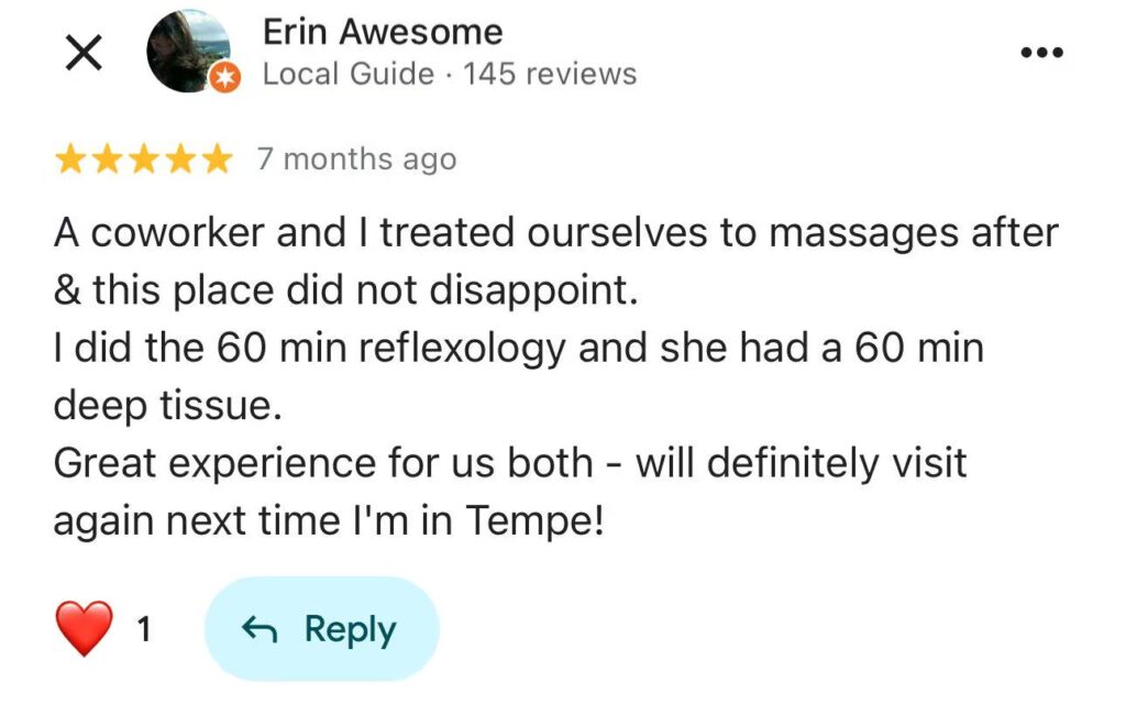 We are Passionate Looking for the best massage services in town? Looking for the best massage services in town? Our team of experienced therapists offers all the relaxation and rejuvenation you’ve been waiting for.Call for Appointment Our ServicesReflexology & Massage Reflexology Combination Swedish Massage Deep Tissue Massage Thai Massage Therapeutic Massage Lomi Lomi Massage Cupping See Our Work!Here’s a quick look at Our Clients Speak!Take a look at what our clients have to say about our work anddedication that keeps them coming back for more. Call For Bookings and AppointmentsLorem ipsum dolor sit amet, consectetur adipiscing elit. Ut elit tellus, luctus nec ullamcorper mattis, pulvinar dapibus leo. +1 480 666 5300